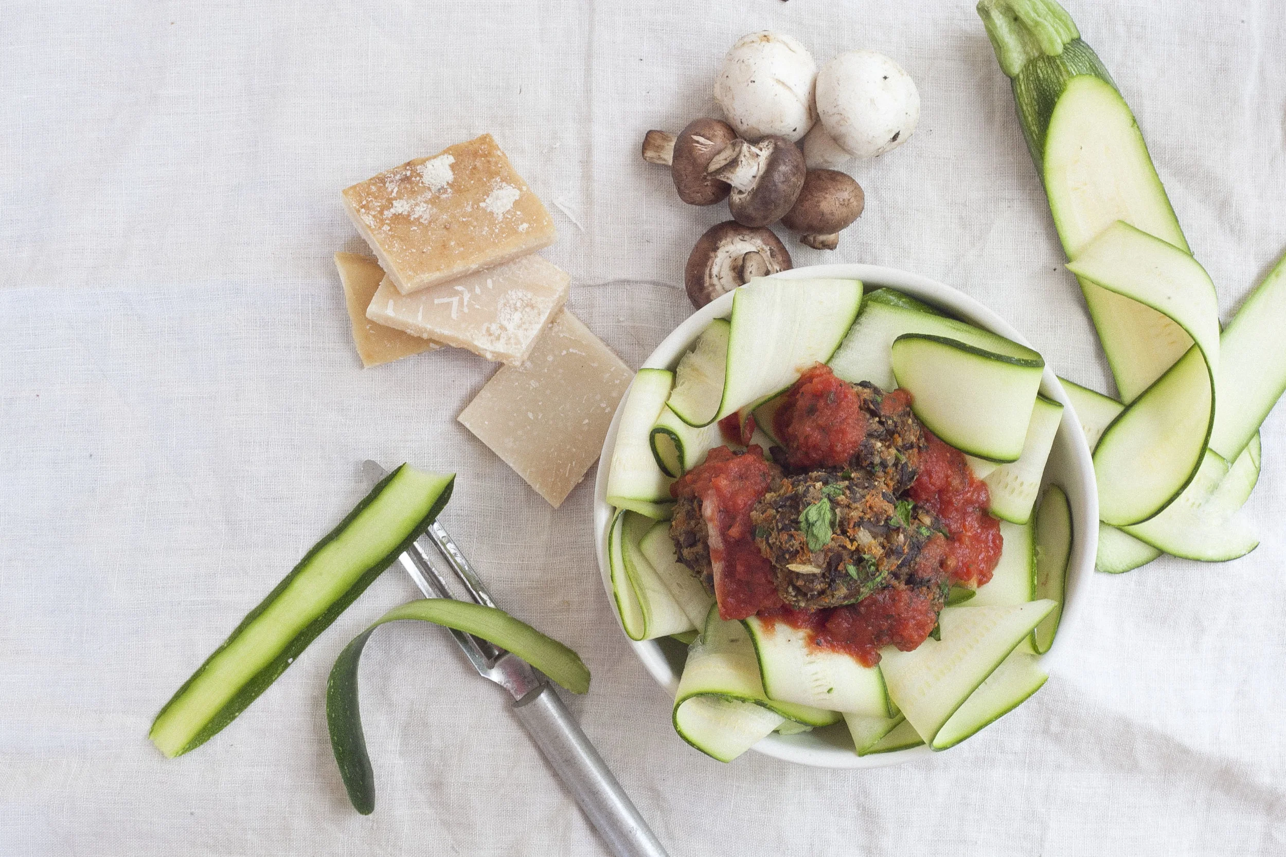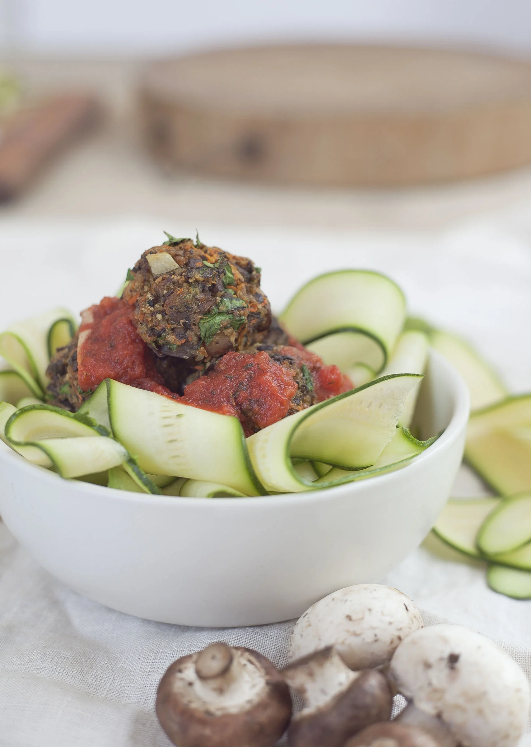 Mushroom Veggie 'Meatballs' and Zucchini Pasta