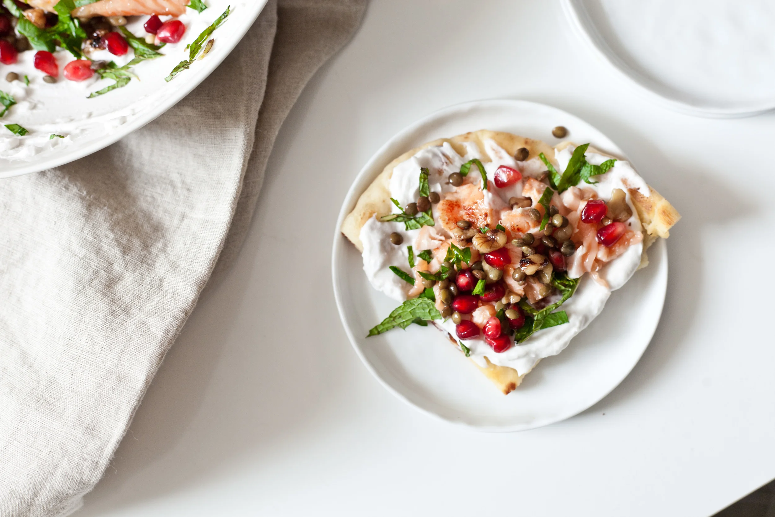 Pomegranate Lentil Salsa and Salmon Flatbread