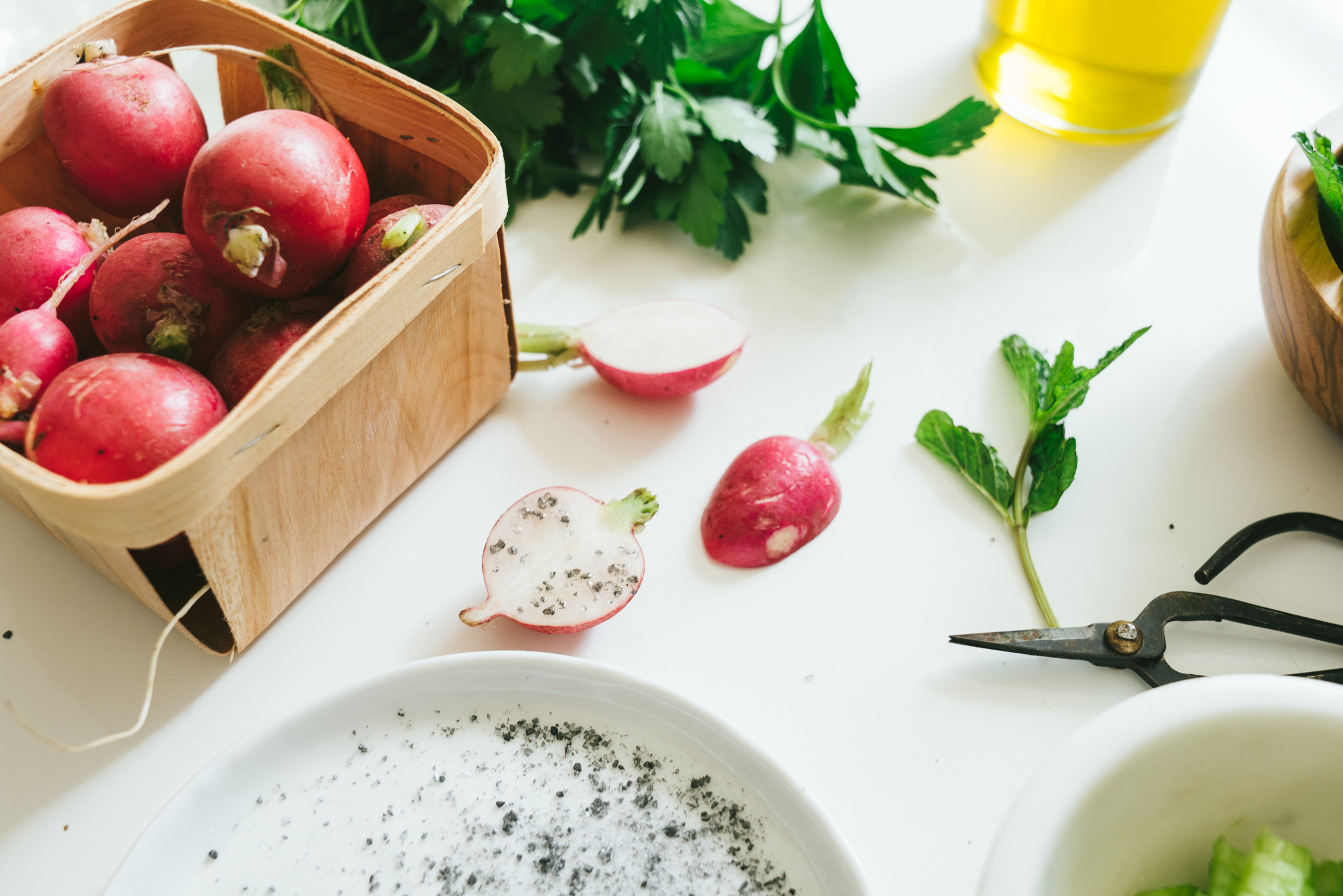 A hint of spring with creamy burrata you'll make over and over again. (We did- and I don't even like radishes that much).