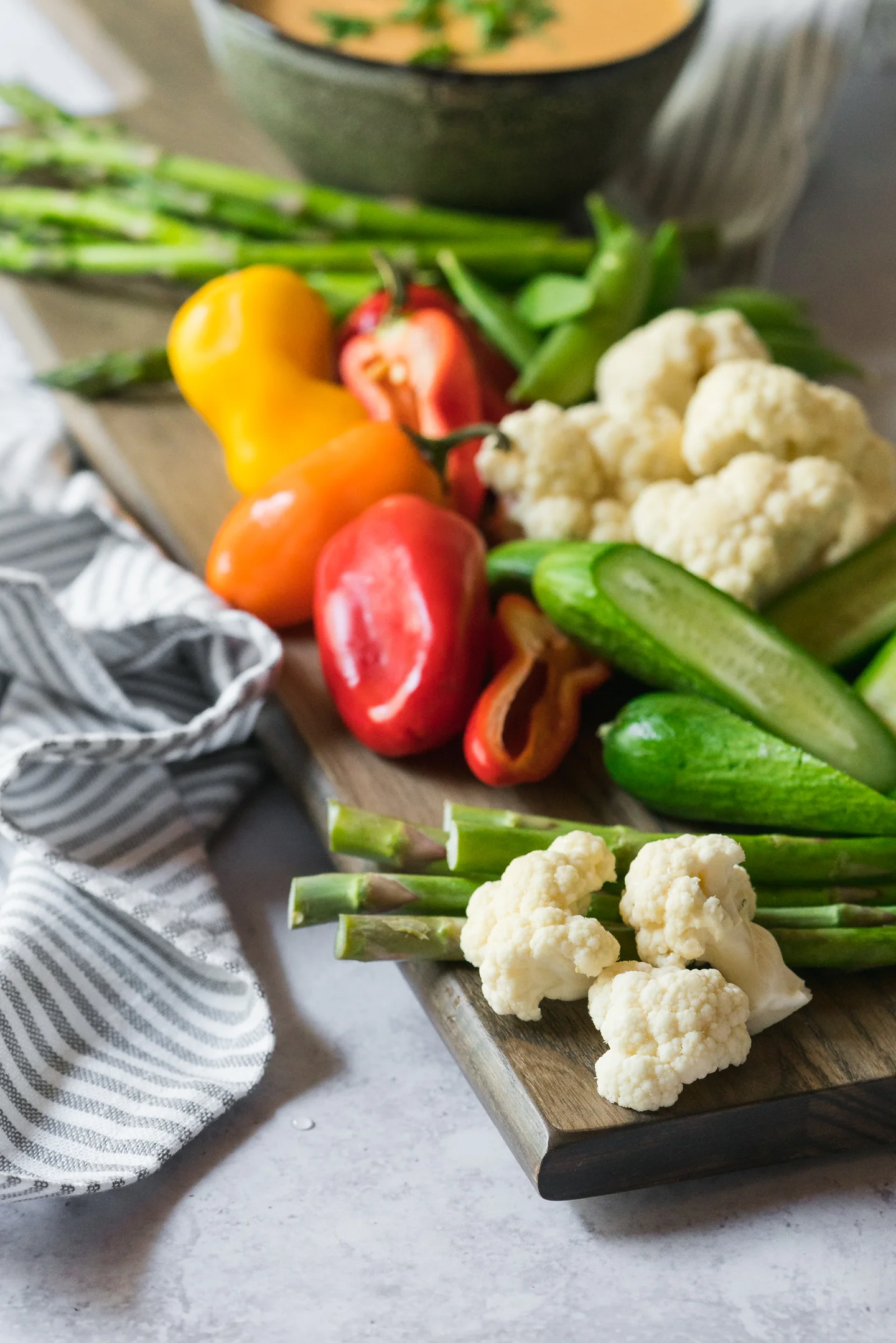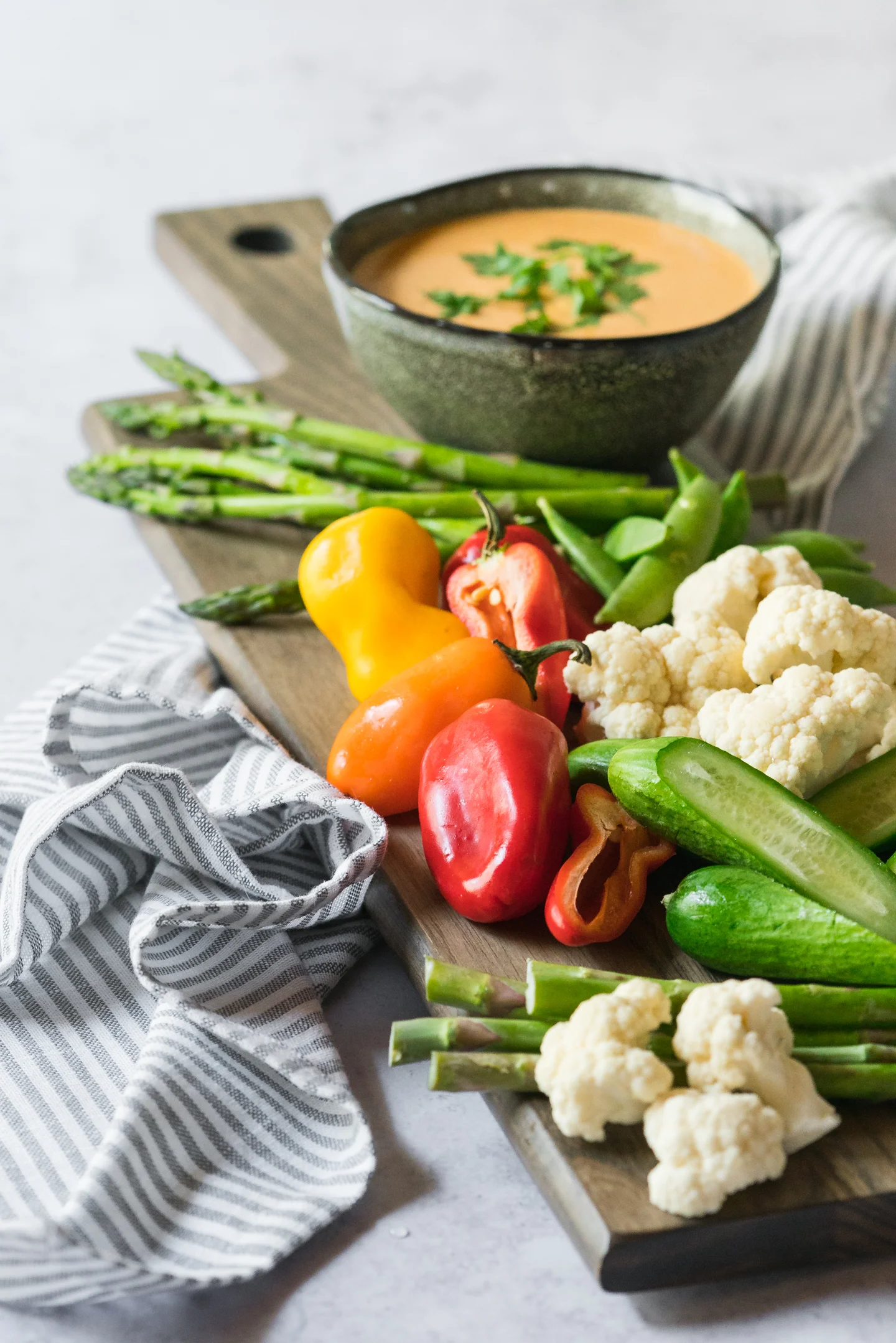 - For serving: crudité of choice (eg cucumber, cauliflower, carrot), naan, etc.